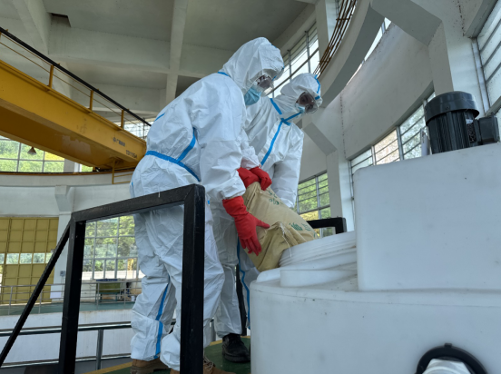 此次演練圍繞原水油跡污染及pH異常偏低兩個(gè)場(chǎng)景展開。演練中,發(fā)現(xiàn)“取水口出現(xiàn)少量油跡污染”后,吸水泵房巡檢人員立即上報(bào)并警戒現(xiàn)場(chǎng),應(yīng)急小組迅速攜帶攔油網(wǎng)、吸油毯趕赴現(xiàn)場(chǎng),30分鐘內(nèi)完成油污攔截與吸附,快速控制污染。隨后模擬原水pH值為6.3時(shí),吸水泵房應(yīng)急加藥系統(tǒng)迅速啟動(dòng),現(xiàn)場(chǎng)處置組協(xié)同配置藥劑、調(diào)試設(shè)備,精準(zhǔn)投加調(diào)節(jié),不到1小時(shí)即讓水質(zhì)穩(wěn)定在安全范圍。演練過程中,吸水泵房作為一線處置陣地,及時(shí)啟動(dòng)應(yīng)急預(yù)案,確保取水水質(zhì)符合生產(chǎn)要求。同時(shí),將觀洞水庫(kù)作為備用水源隨時(shí)待命,形成“即戰(zhàn)即防”的堅(jiān)實(shí)防線。