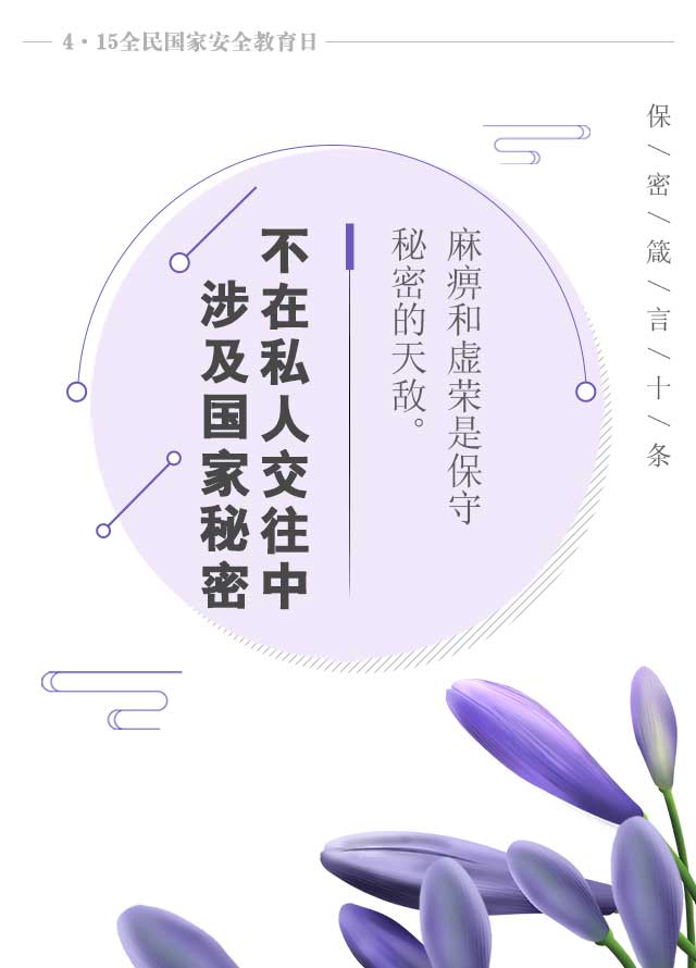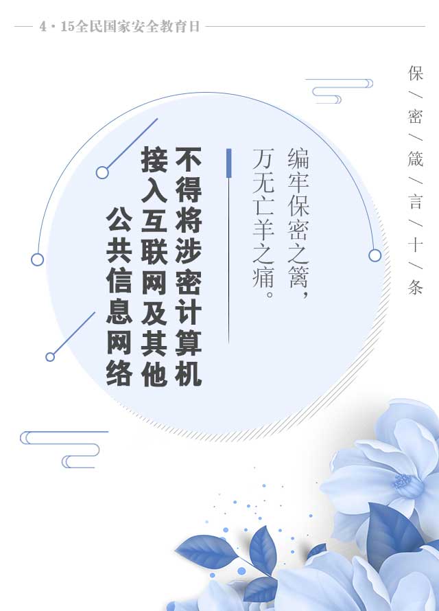 4個全民國家安全教育日。國家利益高于一切,國家安全人人有責,希望大家將警鐘長鳴耳邊,將保密牢記心間,現(xiàn)推出十條“保密箴言”。