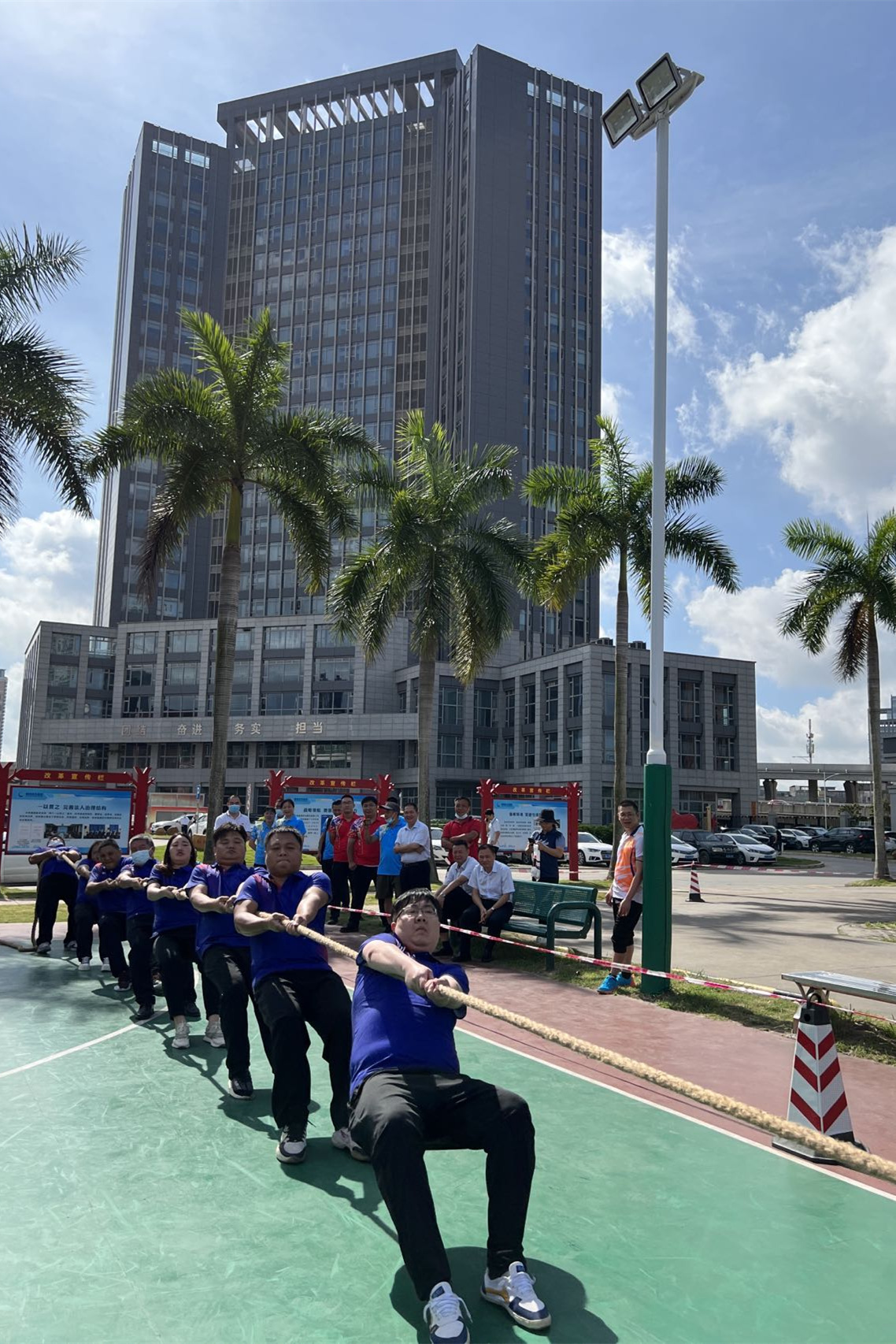 趣味運動會共設置拔河、接力托運乒乓球、大豐收和女子定點投籃四個比賽項目,來自各支部各部門的一線職工運動員近400人次參加了比賽。比賽活動精彩紛呈,亮點呈現(xiàn),趣味十足,氣氛熱烈。在拔河比賽現(xiàn)場,隨著哨聲令下,各參賽隊鼓足干勁、協(xié)調(diào)統(tǒng)一、團結一致,場外吶喊助威聲此起彼伏,緊張激烈的氛圍充分體現(xiàn)了參賽隊伍朝氣蓬勃、團結拼搏、自強不息、積極進取的精神風貌。